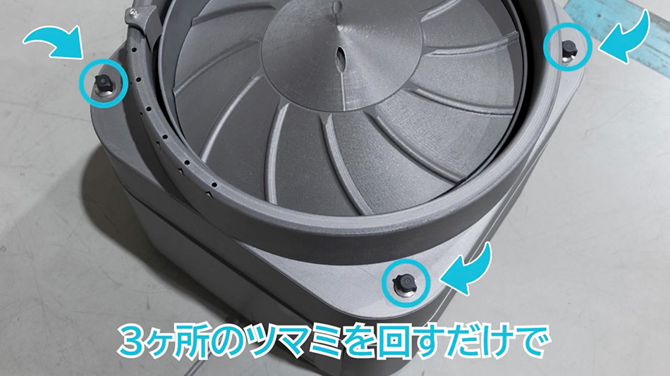 わずか2kg程度の「ボルフィーガード」を交換するだけで、M4~M8のボルト・ネジに対応可能。3箇所のネジは回すだでで脱着可能です。