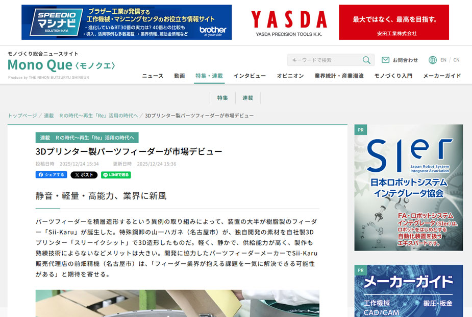 「モノづくり総合ニュースサイト」に掲載されました。